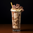 Creamy milkshake with crispy Kit Kat chocolate pieces.