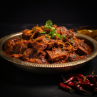 Dry-spiced and succulent mutton preparation for a flavorful bite.