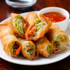 Classic Chinese appetizer with a savory filling, rolled in thin wrappers and fried.