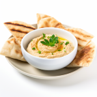 Creamy chickpea dip served with warm pita bread.
