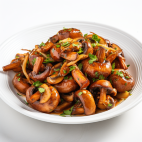 Mushrooms and onions tossed in a spicy garlic paste for a flavorful bite.
