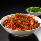 Tender shredded chicken in a spicy and tangy chili sauce.