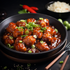 Delicious chicken dumplings in a savory Manchurian sauce.