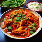 Chicken cooked in a spicy chili sauce, served in a flavorful gravy.